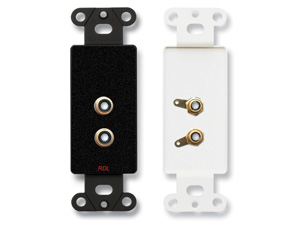 Dual Phono Jacks on D Plate - Solder type - Black (Custom Labeled) (See Part # ZCST-LBL for setup charge)